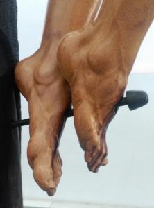 El estudio anatómico de la imagen es de una gran autenticidad. La complexión del cuerpo es atlética. Su moldeado, crea la sensación de incorporación de la figura sobre los clavos de los pies, apoyándose sobre la pierna izquierda. Los brazos, en una posición casi horizontal, dan al cuerpo una sensación de ascensión.