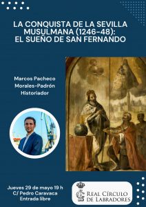 El Jueves 29 de Mayo, tiene lugar en el Real Círculo de Labradores y Propietarios de Sevilla (Calle Pedro Caravaca nº 1), la conferencia «La conquista de la Sevilla musulmana (1246-48): El sueño de San Fernando».