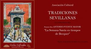La Asociación Cultural Tradiciones Sevillanas organiza el Martes 18 de Febrero, a las 17:15 en el Ateneo de Sevilla (Calle Orfila nº 7), la conferencia «La Semana Santa en tiempos de Bécquer». Entrada libre