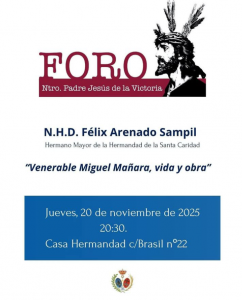 El Foro Nuestro Padre Jesús de la Victoria de la Hermandad de la Paz, organiza el Jueves 20 de Noviembre la conferencia «Venerable Miguel Mañara. Vida y obra».