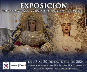 Dentro de los actos organizados en el marco de la Coronación Canónica de Nuestra Señora de la Piedad, la Fundación Cajasol acoge una exposición, del 7 al 20 de Octubre, en horario de 11 a 14 horas y de 18 a 21 horas, en la que se va a mostrar gran parte del extenso patrimonio de la Hermandad del Baratillo.